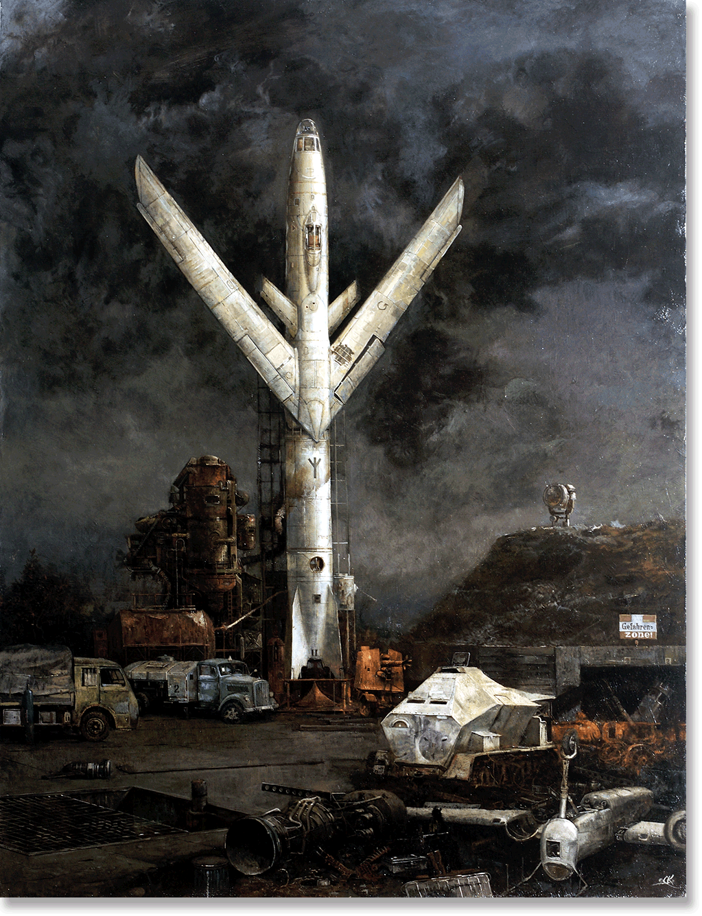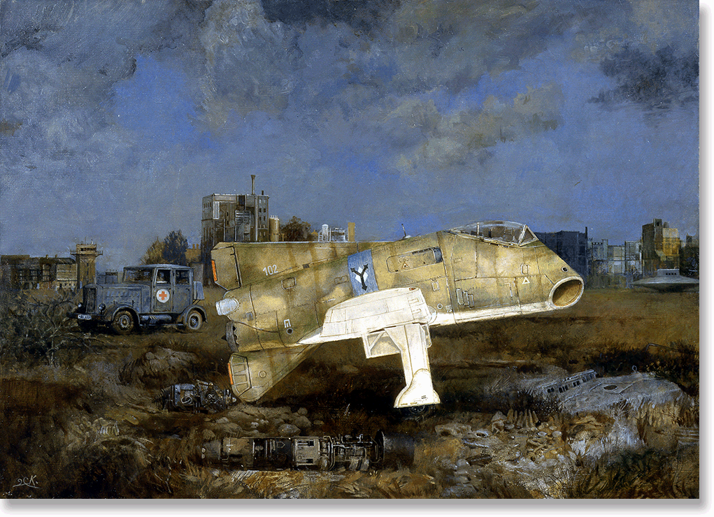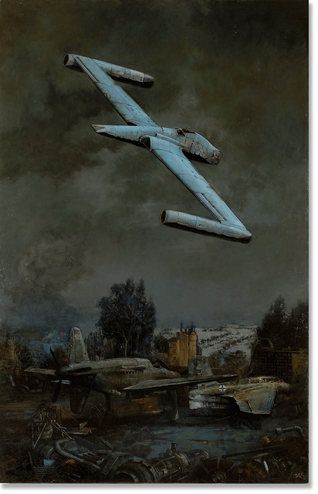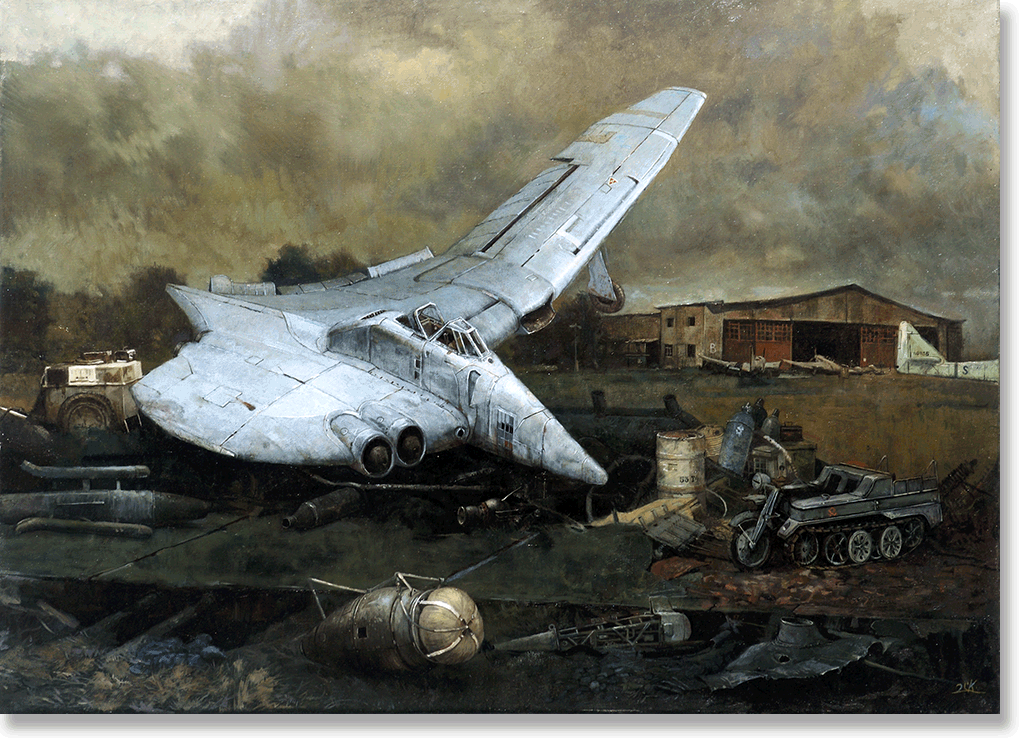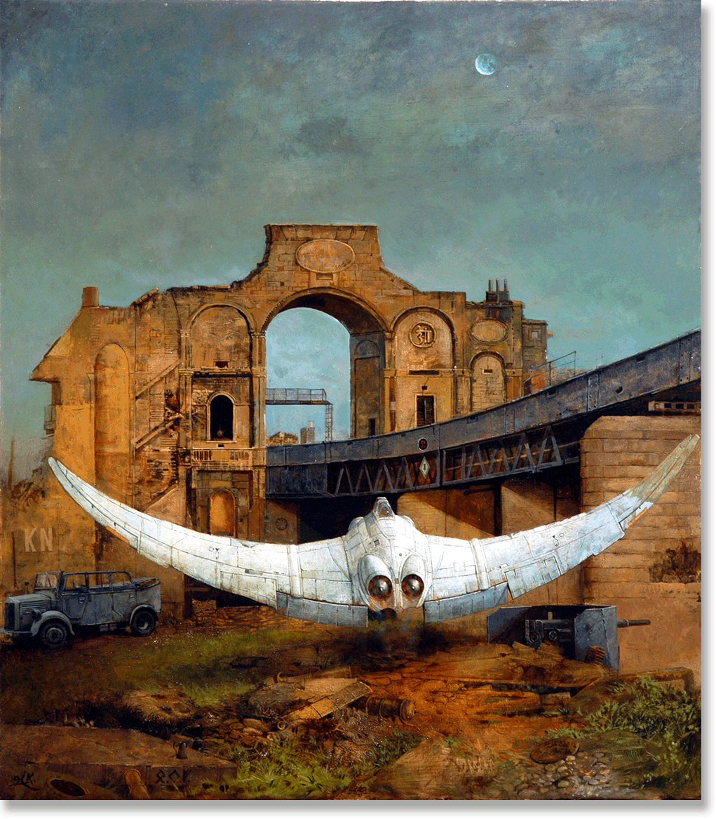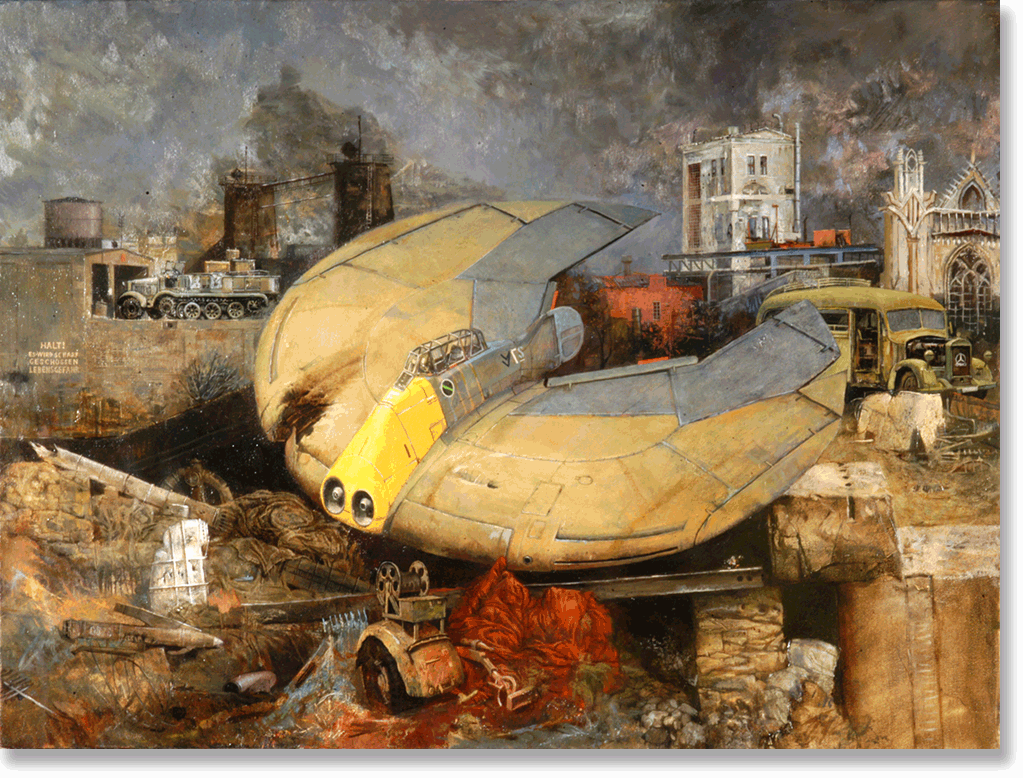 A professional student of the history of aviation and the study of medieval and romance literatures his paintings evoke a new form of hyper-realism that bear a challenging, fantastical edge.